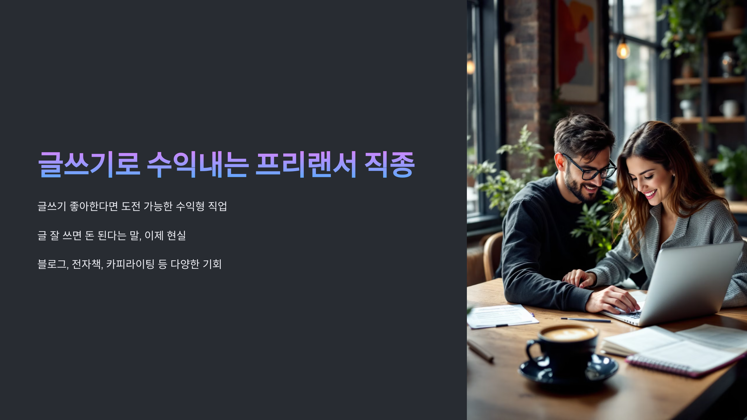 글쓰기를 좋아한다면 누구나 도전해볼 수 있는 수익형 프리랜서 직업, 지금부터 알아보세요.