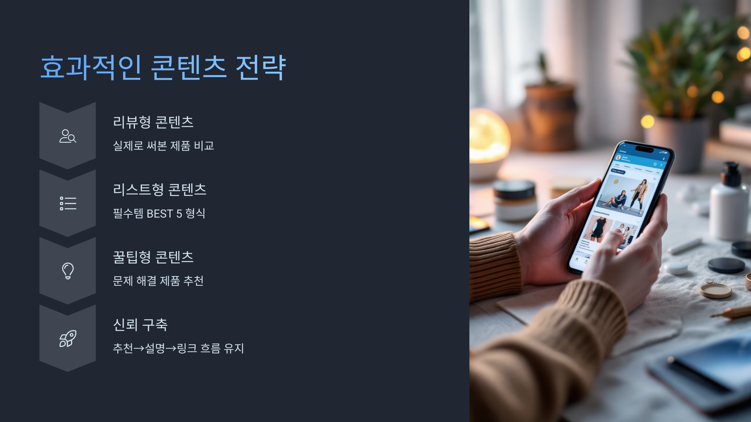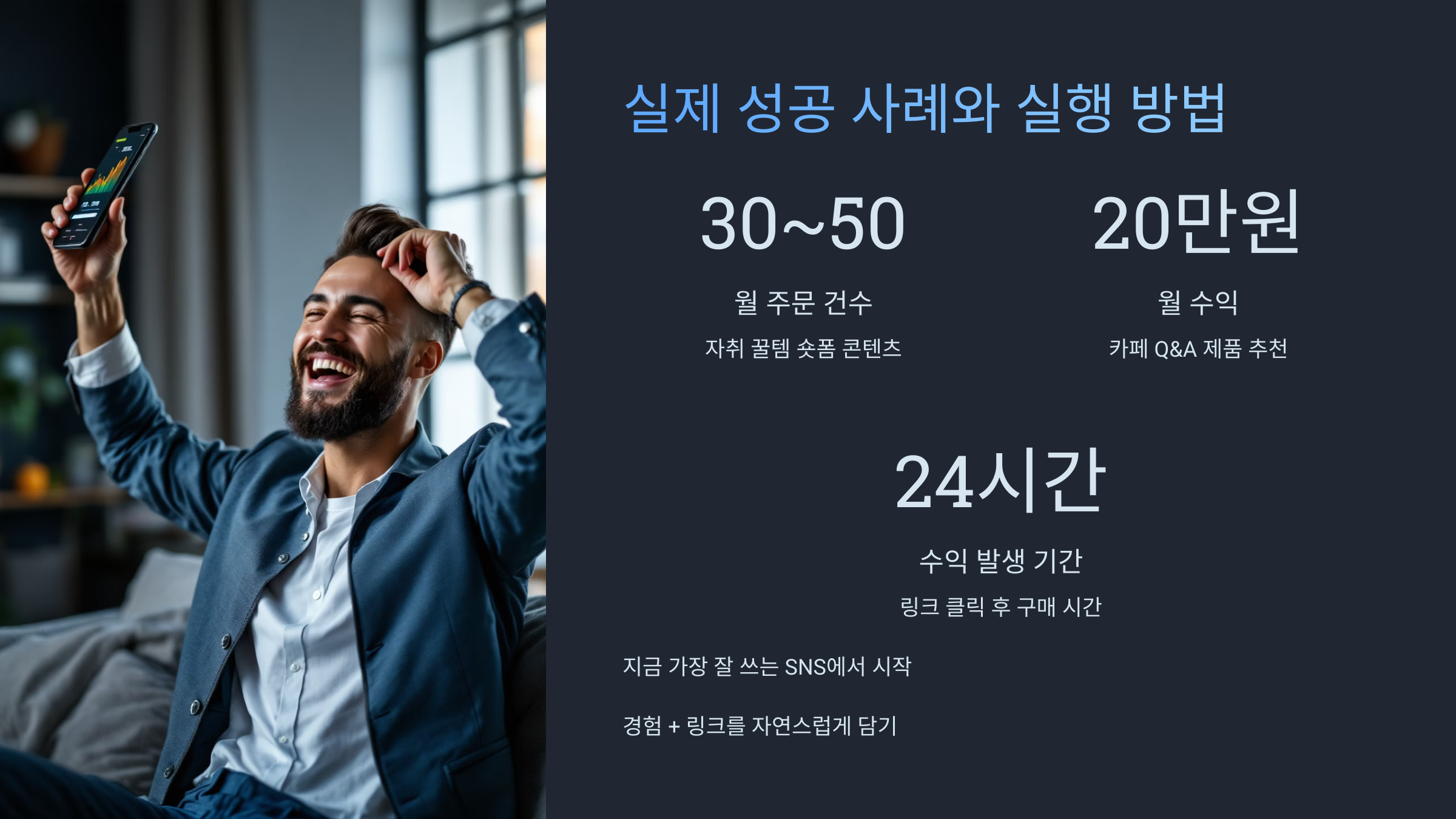 한 유튜버는 자취 꿀템 숏폼 콘텐츠를 업로드하며, 댓글 상단에 쿠팡 링크를 고정했습니다. 이 방식만으로 매달 30~50건의 주문이 발생했다고 해요. 또 다른 분은 네이버 카페 Q&A 게시판에서 제품 추천 형태로 링크를 삽입해 월 20만 원 이상의 수익을 올리고 있었습니다.